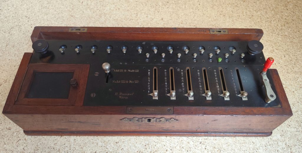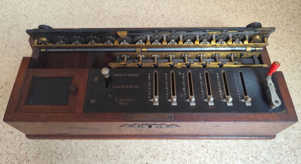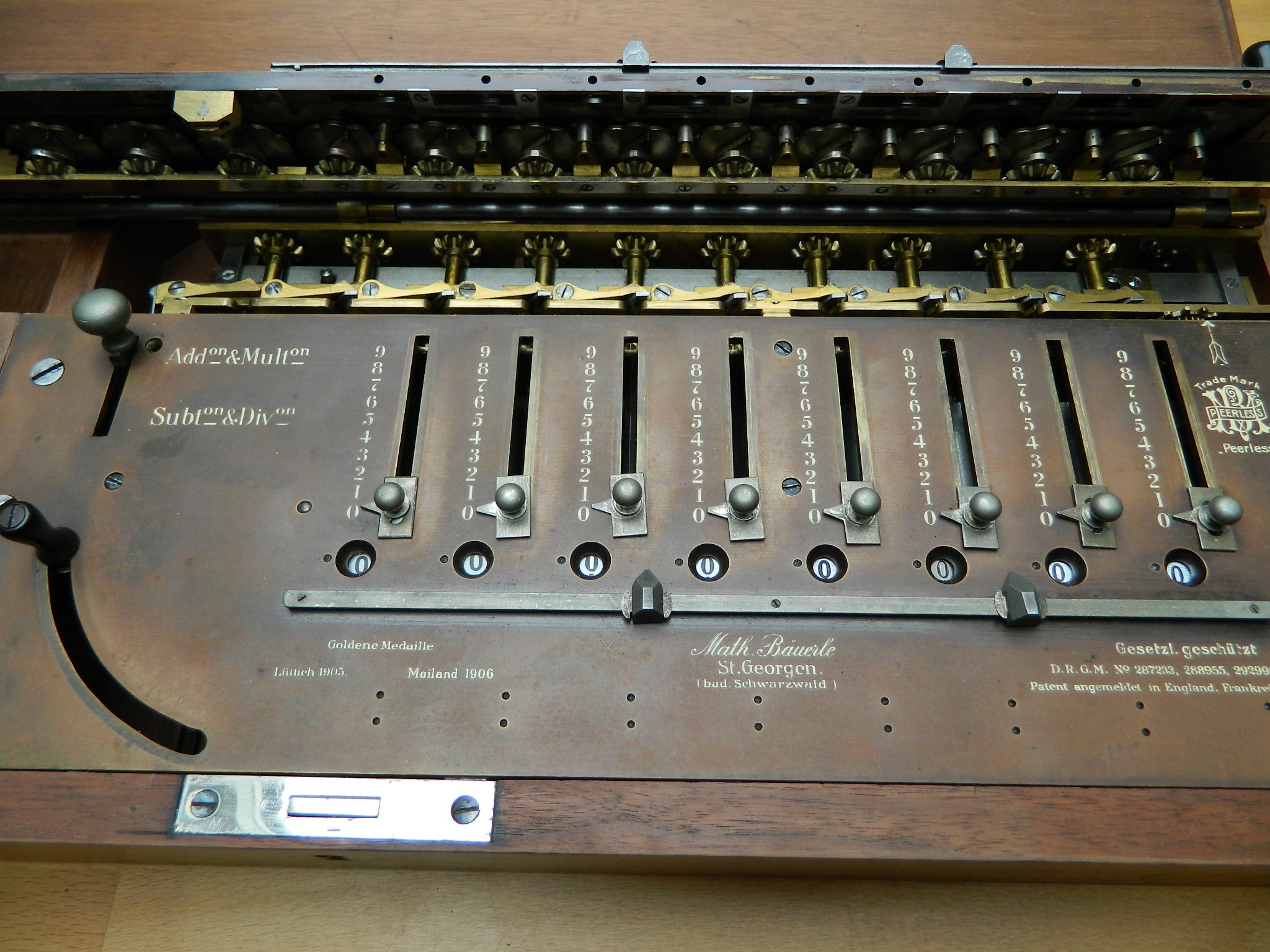 System Staffelwalze Archimedes Archimedes C (1915 – 1940) Archimedes D (1915-1930) Archimedes NE (1945-1957) Archimedes NH (1945-1956) Burkhardt Burkhardt A ~1900 (1880-1910) Bunzel (Burkhardt A) 1902 (1880-1910) Burkhardt A 1903 (1880-1910) Burkhardt E2 1929 Burkhardt E2 1929 Math. Bäuerle Peerless II (1901 – 1905) Badenia I 1925 Peerless I 1928 (1921 – 1930) Badenia -Klein 1928 Badenia -TH 13 ~1936 Monroe Monroe G 1920 Monroe L160X 1926- Monroe LA1307 1930- Nisa Nisa M 1955 Nisa K 1956 Nisa K2 1968 Nisa K5 1969 Saxonia Saxonia 2 (1901 – 1905) Thomas Arithmometer Thomas Arithmomètre 1870 (1850-1887) TIM (Time is money) von Ludwig Spitz TIM Unitas I 1908 (1907-1910) TIM III 1916 (1910-1929) TIM III mit Tasten 1918 (1910-1929) TIM Unitas II 1921 (1914-1929) TIM 1 miniatur 1929 (1929-1935) Diverse Lindström Record (1914-1929) Rheinmetall D1e 1937 (1926-1945) Brunsviga 10 1934 (1932-1943) Brunsviga 11E (1951-1960)